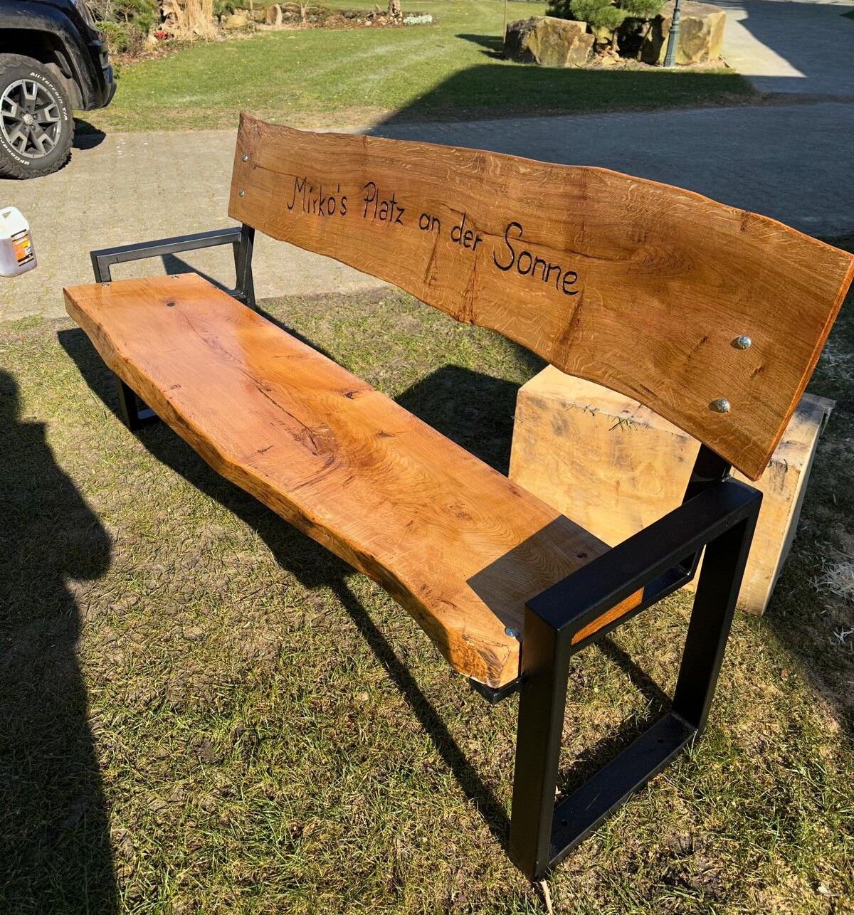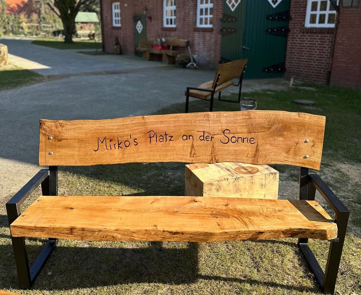 Ein Meisterwerk, bereit für deine Gravur: Bestelle deine Eichenholzbank und teile uns deine Wünsche für die Gravur mit – sei es ein Lebensmotto, ein Familienname oder ein besonderes Datum, das dir am Herzen liegt. Wir sorgen für die feine Einarbeitung und schließen mit einer sorgfältigen Lasur ab, die die natürliche Schönheit des Holzes betont und es für viele Jahre schützt.