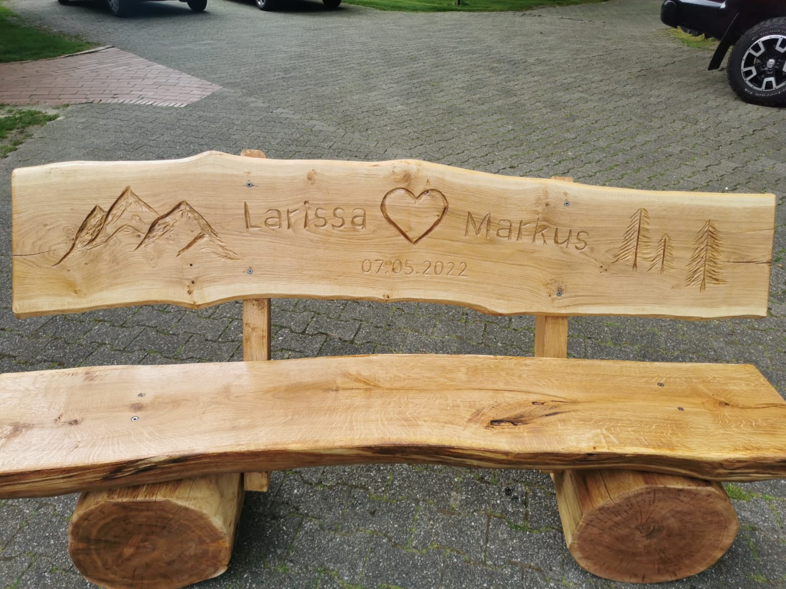 Für die Holzbank mit Gravur ist beispielsweise Folgendes möglich: