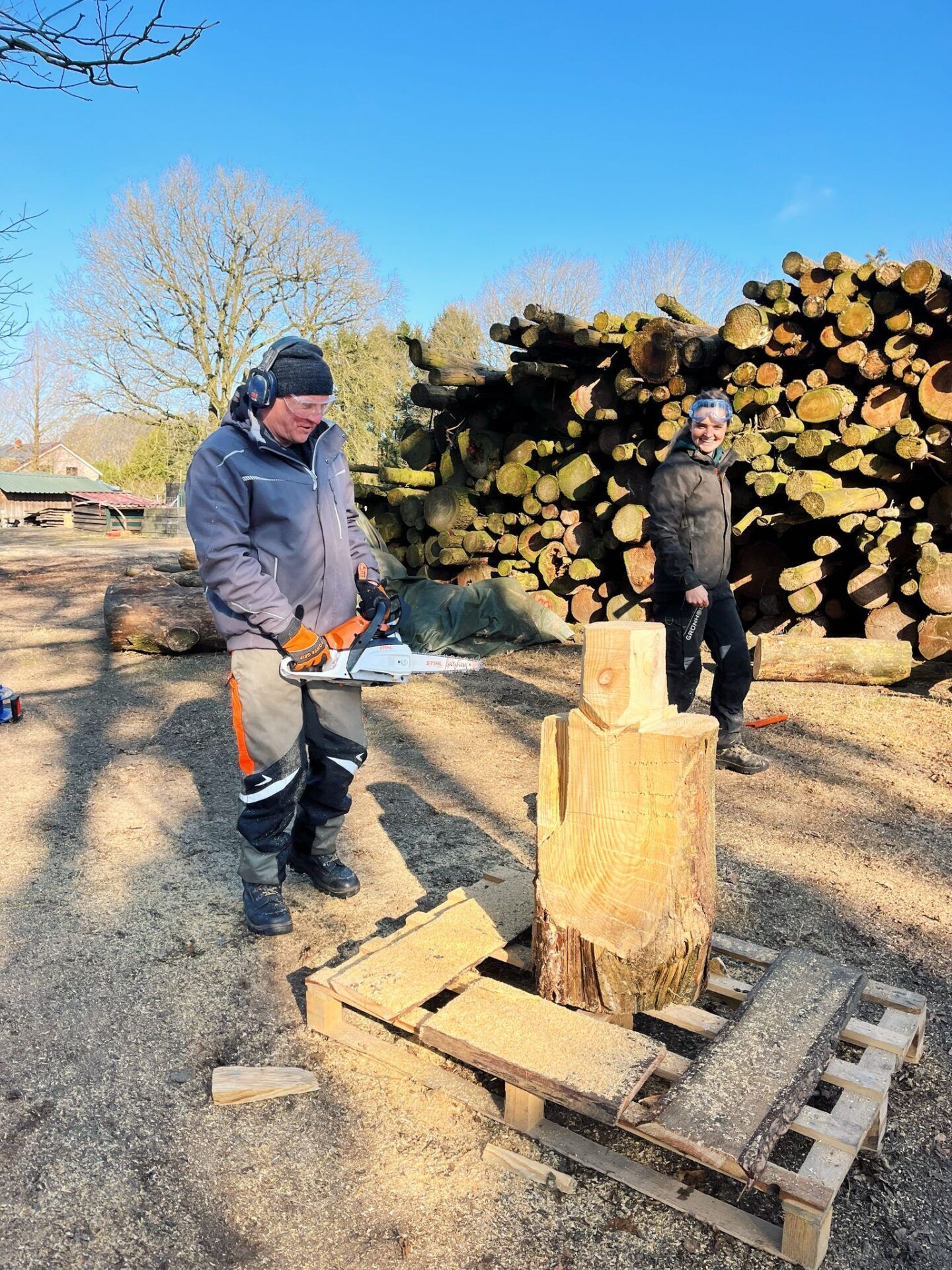 Nach einer kurzen Einführung geht es direkt ans Holz. Du erfährst alles, was du für sicheres und erfolgreiches Schnitzen wissen musst – vom richtigen Umgang mit der Kettensäge bis hin zu wichtigen Schnitztechniken. Ob du zum ersten Mal eine Motorsäge in der Hand hältst oder bereits erste Erfahrungen hast, spielt dabei keine Rolle. Dank der kleinen Gruppen von maximal 6 Personen erhältst du persönliche Tipps und lernst in entspannter Atmosphäre.