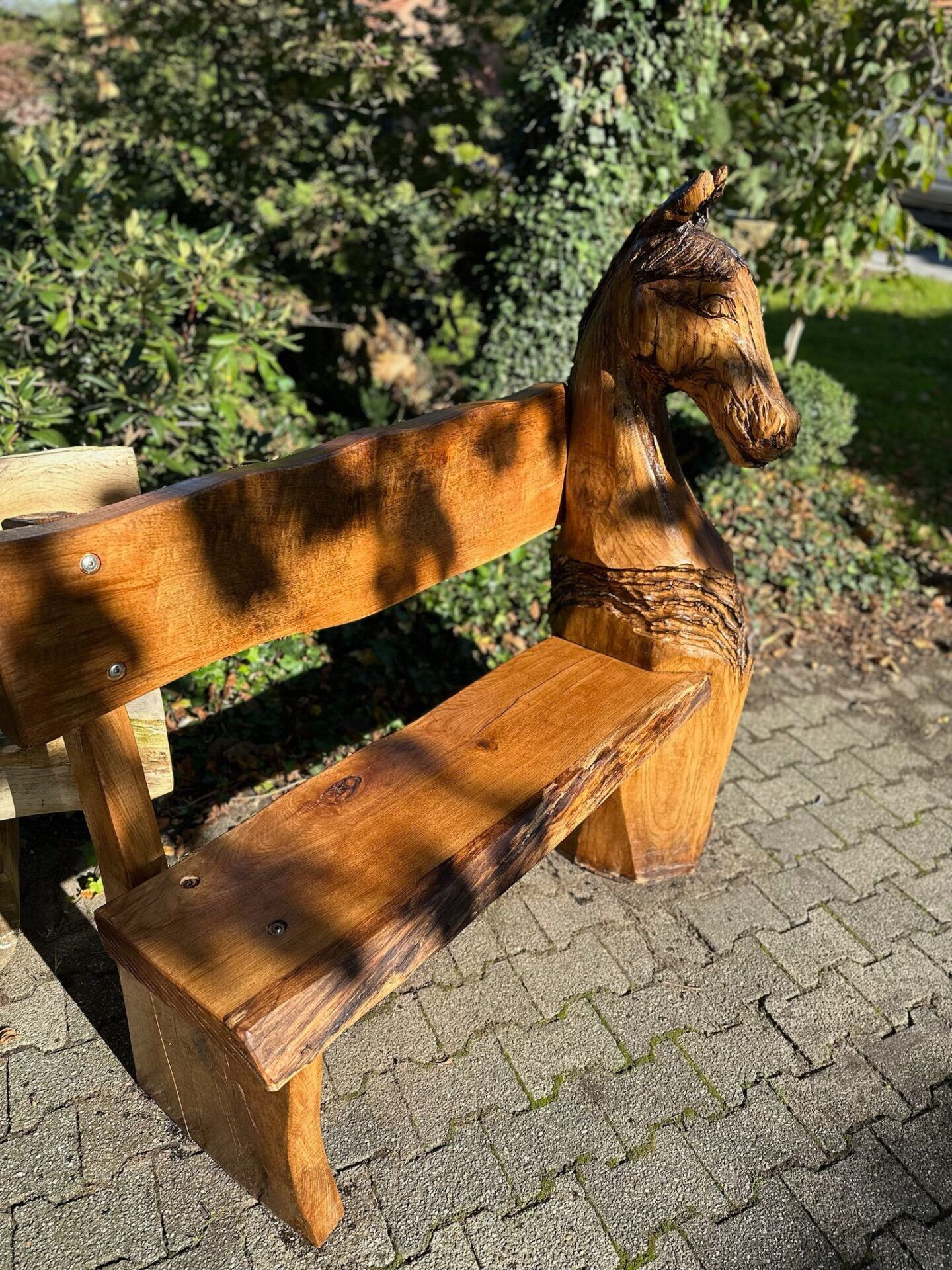 Die abgebildete Skulpturenbank mit Pferd misst ca. 150 cm in der Länge. Du kannst jedoch individuelle Maße wählen – ganz nach deinem Wunsch und passend zu deinem Standort.
